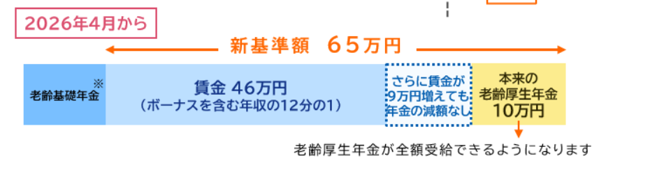 在職老齢年金が月51万円から65万円に引き上げられます。(令和8年度)