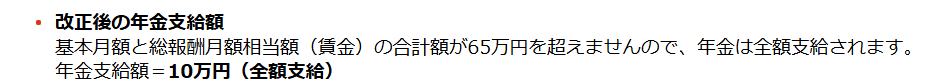 令和7年度では上記のパターンでは月25000円の支給停止となっていましたが、支給停止調整額が65万になったことから本来の老齢厚生年金が全額受給できるようになりました。