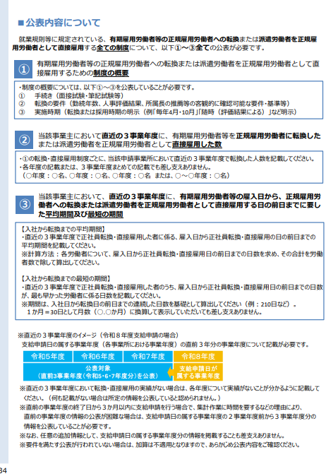 新設企業等で、直近の3事業年度における転換実績が存在しない(または一部しか存在しない)場合は、②及び③については0人(実績なし)等と記載ください。(何も記載がない場合は所定の情報を公表していると認められません。)