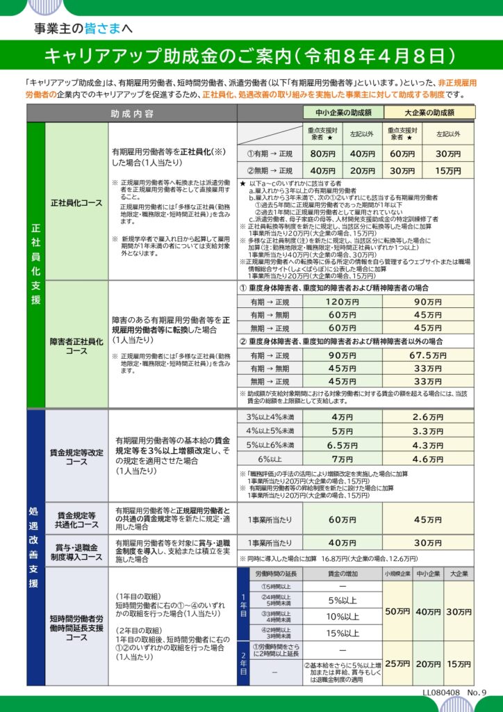令和8年4月8日に令和8年度のキャリアアップ助成金の詳細が発表されました。大きな変更点として